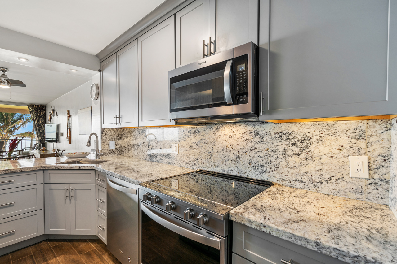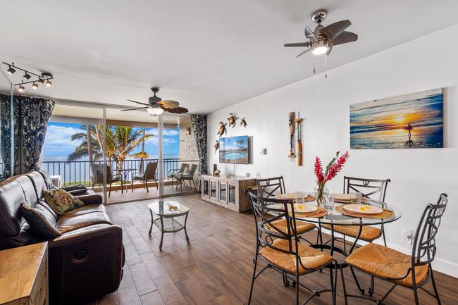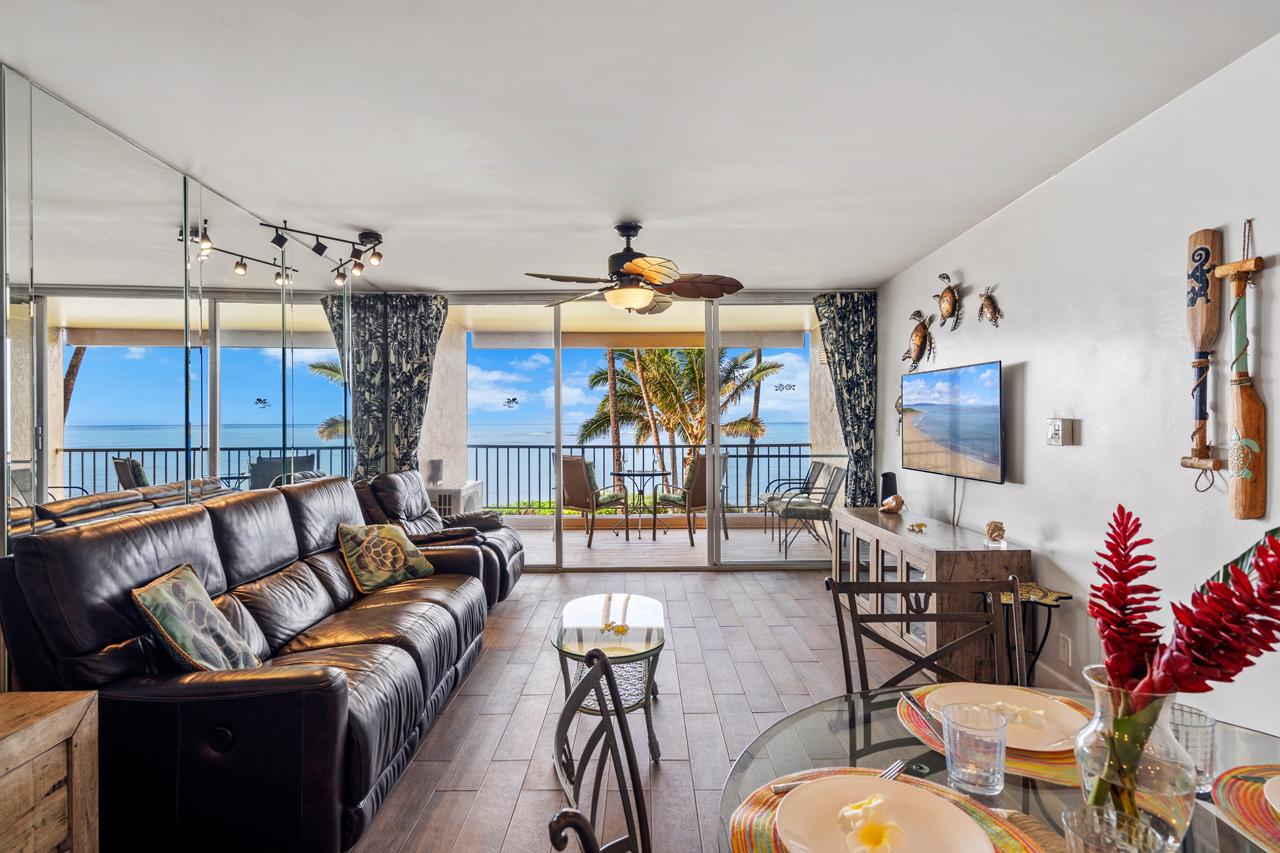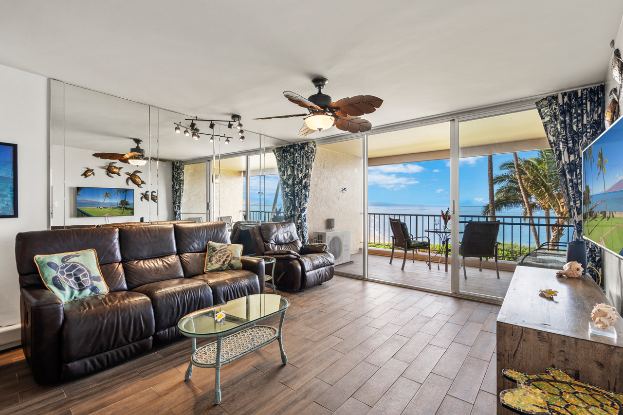 Direct oceanfront unit competitively priced to SELL in popular HOTEL-ZONED community! Menehune Shores #217 is perfectly positioned approx 100 feet from the shoreline with unobstructed panoramic ocean views and convenient access to sandy beaches on both sides and the famed historic Ko'ie'ie Fishpond. This beautifully upgraded and immaculately maintained 1-bedroom, 661 square foot condo has an unbeatable location and has been a very popular vacation rental with more than 200 ***** FIVE STAR reviews. Relax on the spacious private covered lanai to the soothing sounds of ocean waves while you marvel at sunsets and seasonal humpback whales. Offered turn-key and fully furnished, Unit #217 was upgraded and remodeled with clean & modern ceramic tile flooring, granite countertops, stainless steel appliances, refined wall colors, plantation shutters in the bedroom and kitchen, and tasteful decor details throughout. Split A/C units in both the living room and bedroom. This well located condo has been meticulously cared for and the great pride of ownership makes it feel more like a private residence. Perfect for quick access to swimming, snorkeling, paddleboarding, kid friendly beach at the fishpond, and all the convenient shops and restaurants of central Kihei. On-site amenities at Menehune Shores include oceanfront pool, shuffleboard, oceanfront BBQ area, rooftop entertaining area with grills and amazing 360-degree views, on-site dining at the award winning Monsoon Bar & Grill, and ample on-site parking.